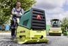 Water tank and sprinkler bar prepare the machine for action on fresh asphalt. The water prevents the asphalt from sticking on the plate. A control on the handle enables sprinkling to be changed (front/back), minimising water usage and extending intervals between fillings.