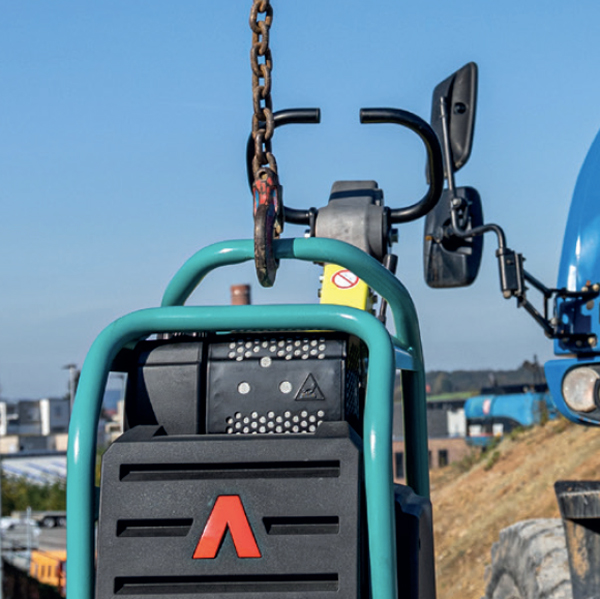 The tiedown points make securing the machine fast and easy, ensuring success so that risks are minimised. A central lifting hook is integrated into the frame.
